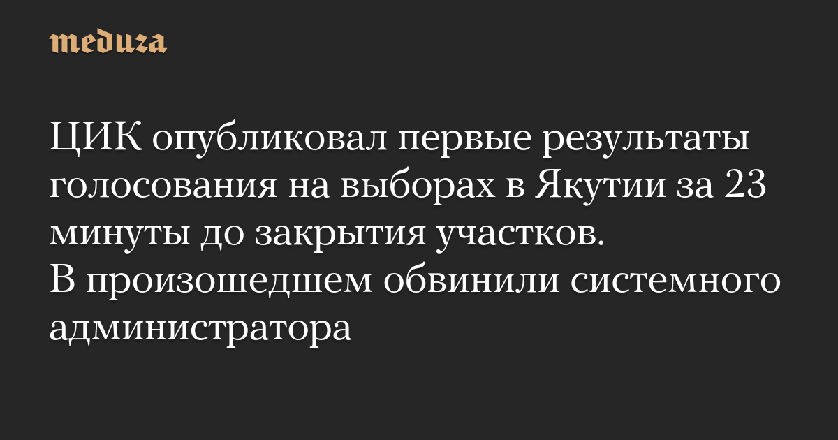 ЦИК опубликовал первые результаты голосования на выборах в Якутии за 23 минуты до закрытия участков. В произошедшем обвинили системного администратора