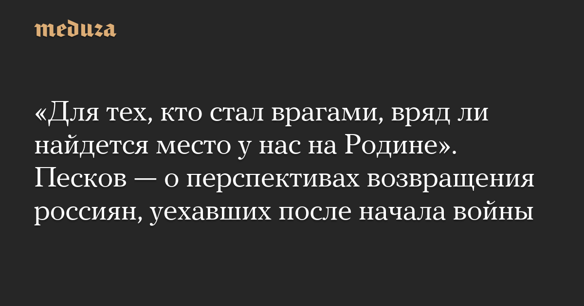 «Для тех, кто стал врагами, вряд ли найдется место у нас на Родине». Песков — о перспективах возвращения россиян, уехавших после начала войны