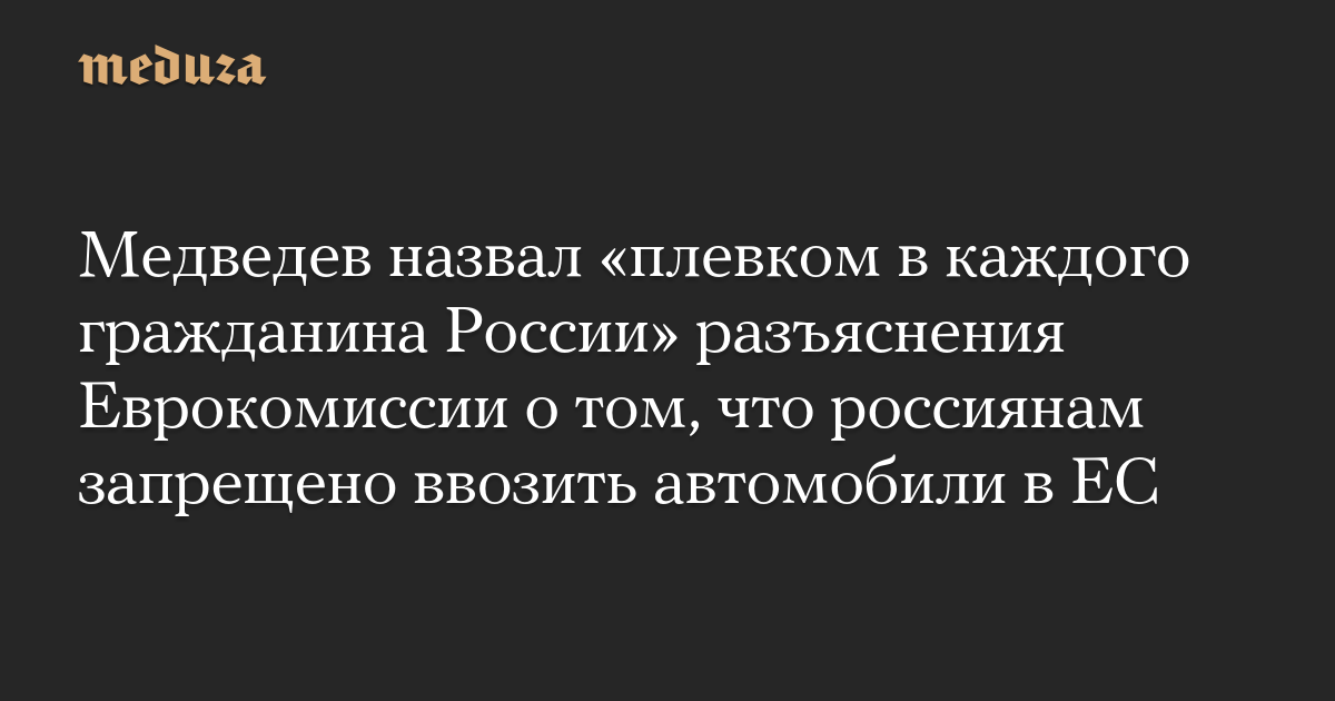 Медведев назвал «плевком в каждого гражданина России» разъяснения Еврокомиссии о том, что россиянам запрещено ввозить автомобили в ЕС