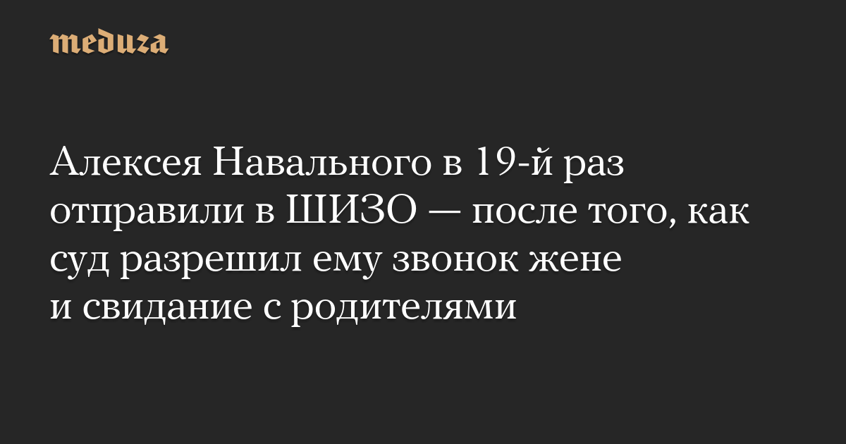 Алексея Навального в 19-й раз отправили в ШИЗО — после того, как суд разрешил ему звонок жене и свидание с родителями