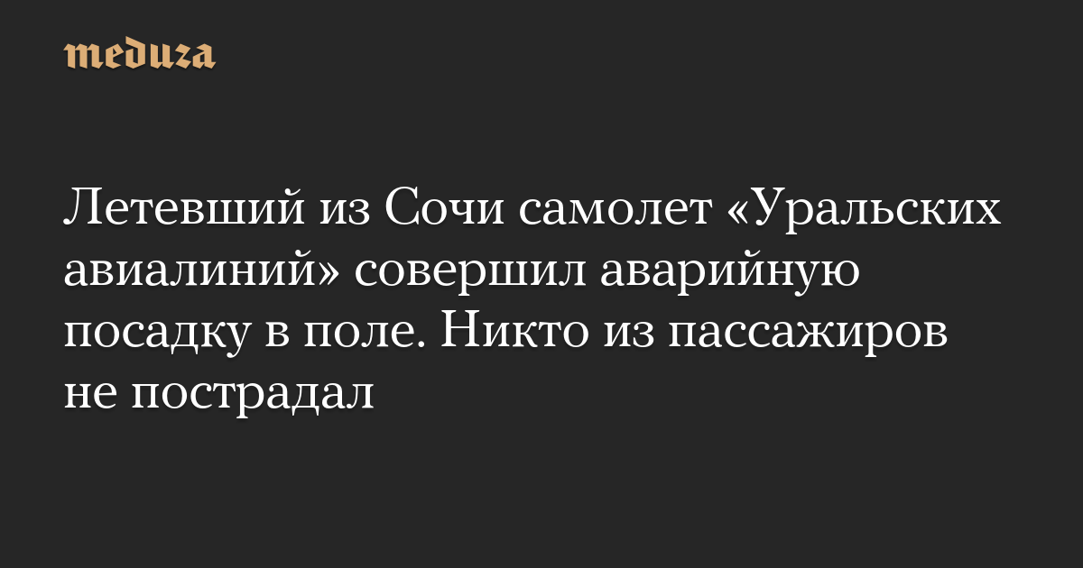 Летевший из Сочи самолет «Уральских авиалиний» совершил аварийную посадку в поле. Никто из пассажиров не пострадал