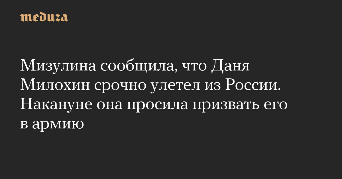 Мизулина сообщила, что Даня Милохин срочно улетел из России. Накануне она просила призвать его в армию