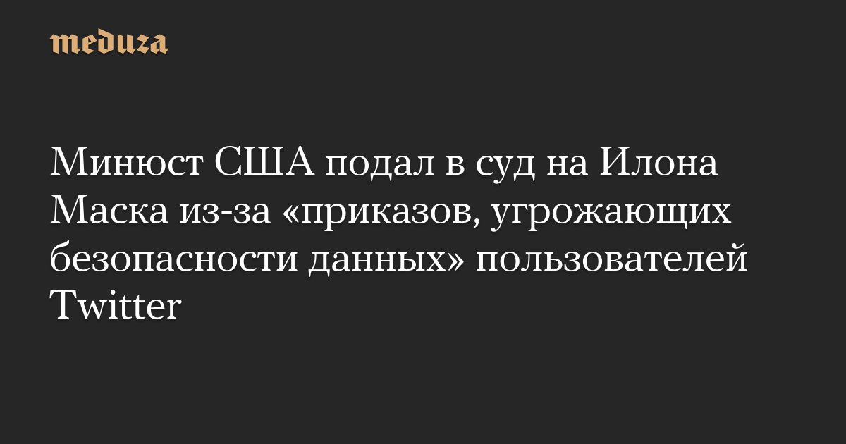 Минюст США подал в суд на Илона Маска из-за «приказов, угрожающих безопасности данных» пользователей Twitter