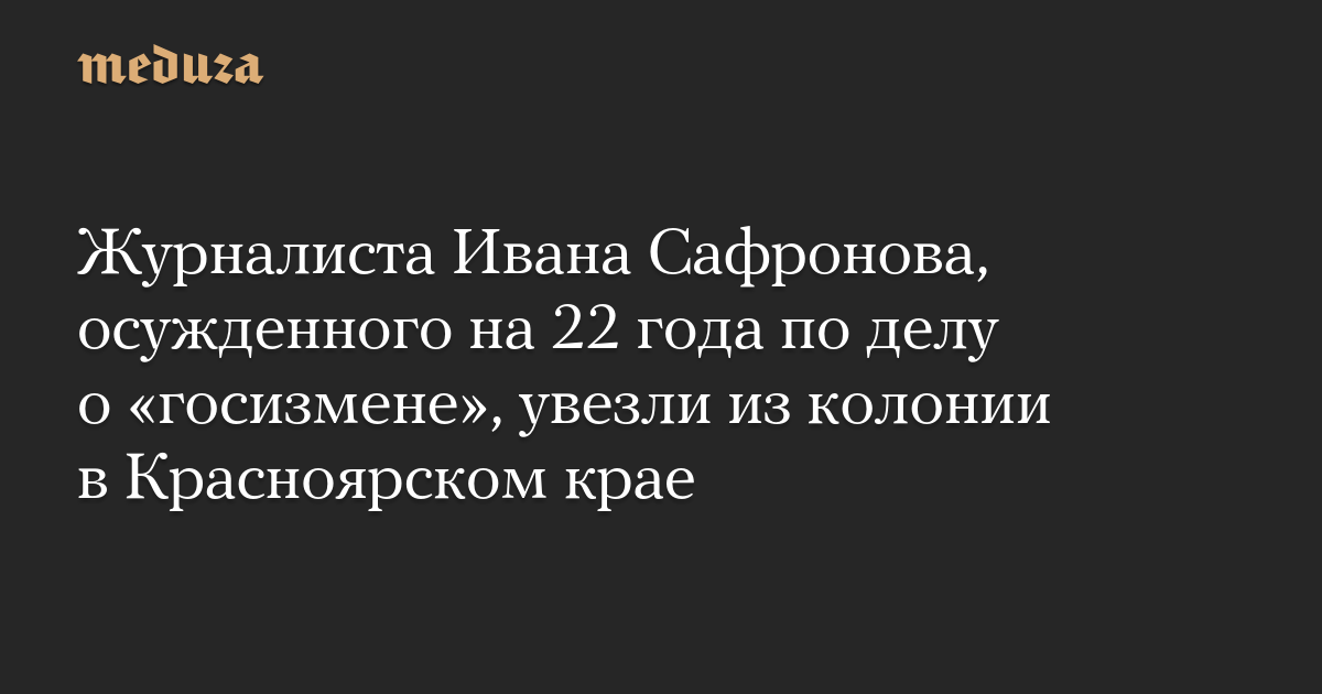 Журналиста Ивана Сафронова увезли из исправительной колонии № 7 в Красноярском крае. Об этом сообщается в группе поддержке журналиста.