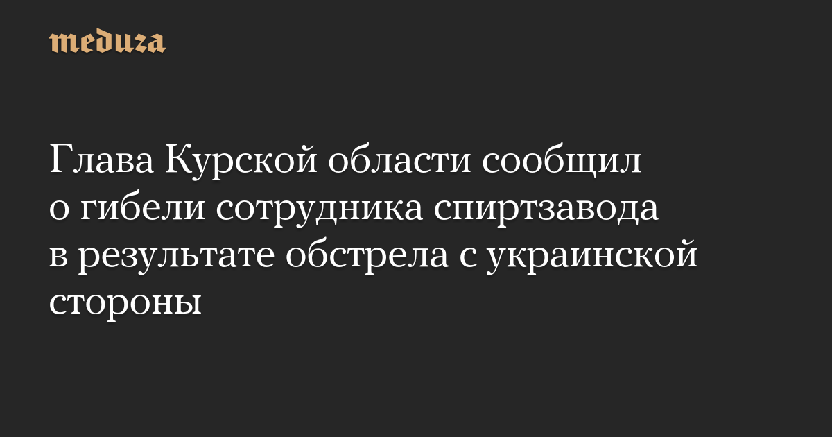 Глава Курской области сообщил о гибели сотрудника спиртзавода в результате обстрела с украинской стороны