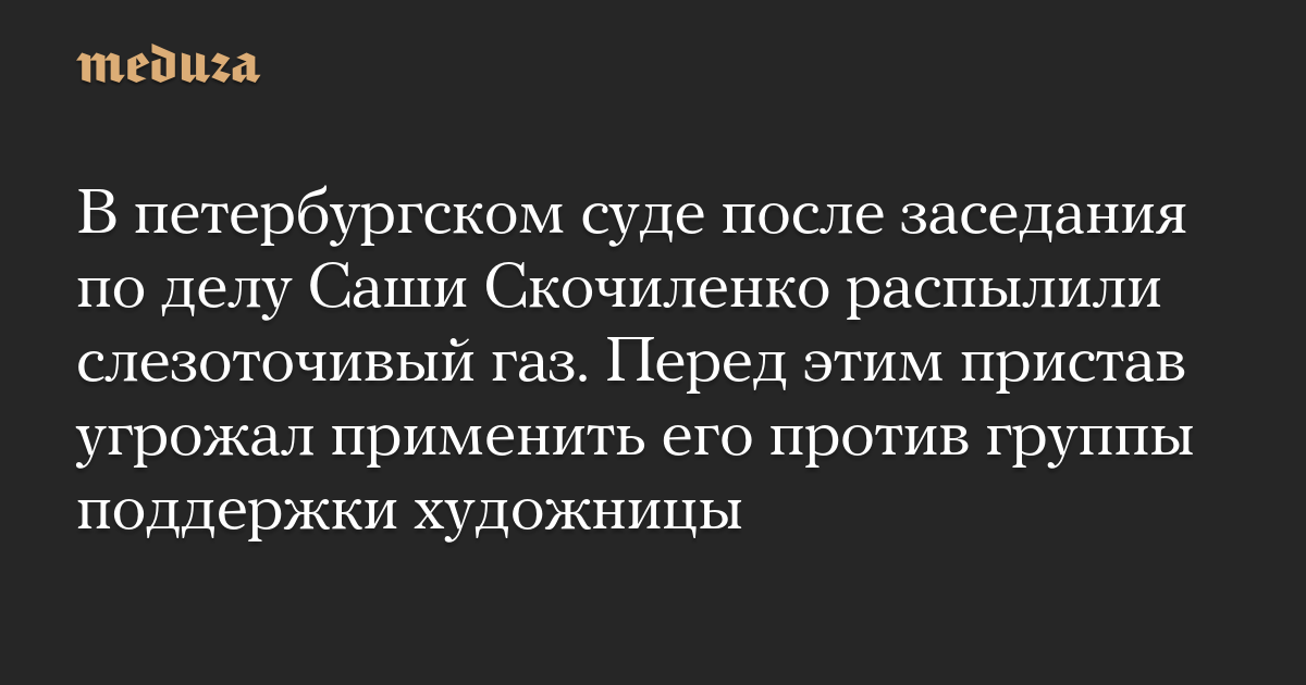 В Василеостровском районном суде Петербурга после заседания по делу художницы Саши Скочиленко распылили слезоточивый газ, сообщил корреспондент «Медиазоны» из здания суда.