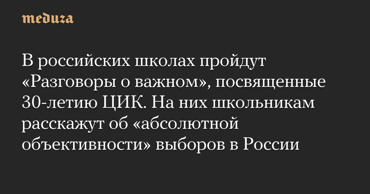 В российских школах 25 сентября пройдут «Разговоры о важном», посвященные 30-летию Центральной избирательной комиссии, во время которых ученикам расскажут об «абсолютной объективности» российских выборов. Материалы к уроку уже появились на официальном сайте предмета, обратило внимание «Агентство».