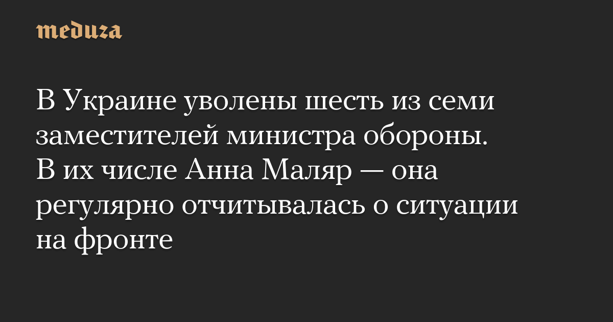 В Украине уволены шесть из семи заместителей министра обороны. В их числе Анна Маляр — она регулярно отчитывалась о ситуации на фронте
