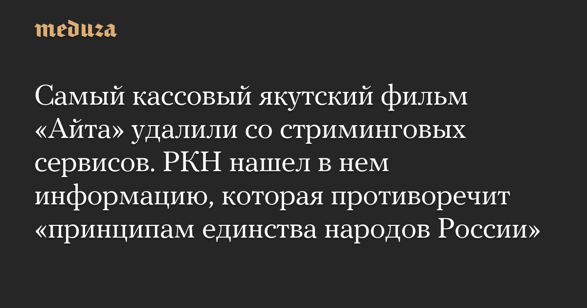 Самый кассовый якутский фильм «Айта» удалили со стриминговых сервисов. РКН нашел в нем информацию, которая противоречит «принципам единства народов России»