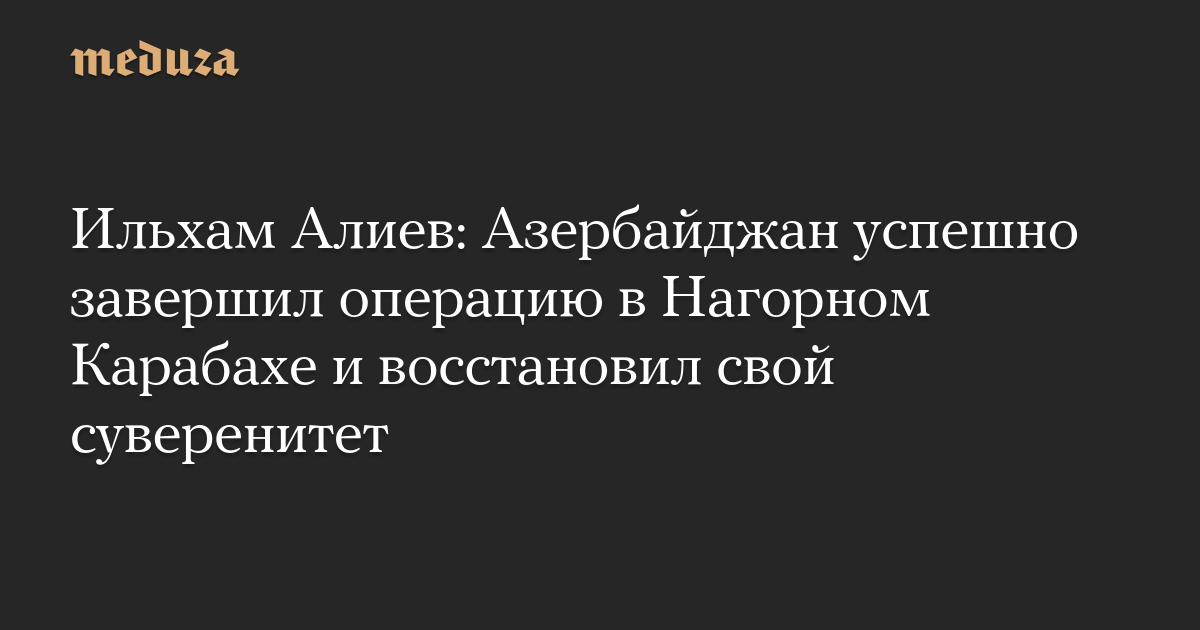Президент Азербайджана Ильхам Алиев выступил с обращением, в котором заявил, что в результате «антитеррористических мероприятий» в Нагорном Карабахе и их «успешного завершения» страна восстановила свой суверенитет. Его слова приводят издания Report и Sputnik Азербайджан.