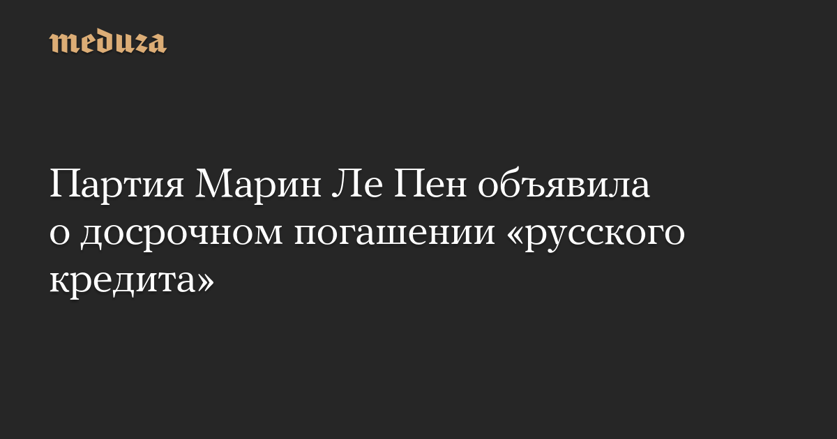Партия Марин Ле Пен объявила о досрочном погашении «русского кредита»