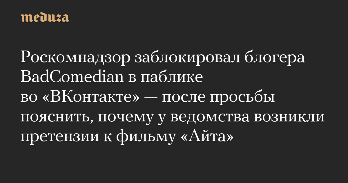 Роскомнадзор заблокировал блогера BadComedian в паблике во «ВКонтакте» — после просьбы пояснить, почему у ведомства возникли претензии к фильму «Айта»