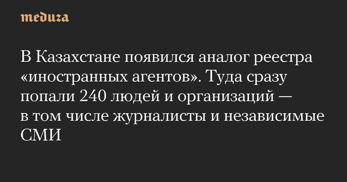 В Казахстане появился аналог реестра «иностранных агентов». Туда сразу попали 240 людей и организаций — в том числе журналисты и независимые СМИ