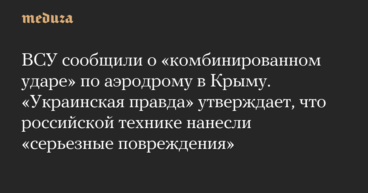 ВСУ сообщили о «комбинированном ударе» по аэродрому в Крыму. «Украинская правда» утверждает, что российской технике нанесли «серьезные повреждения»