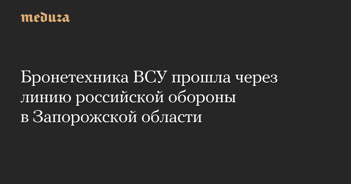 Бронетехника ВСУ прошла через линию российской обороны в Запорожской области