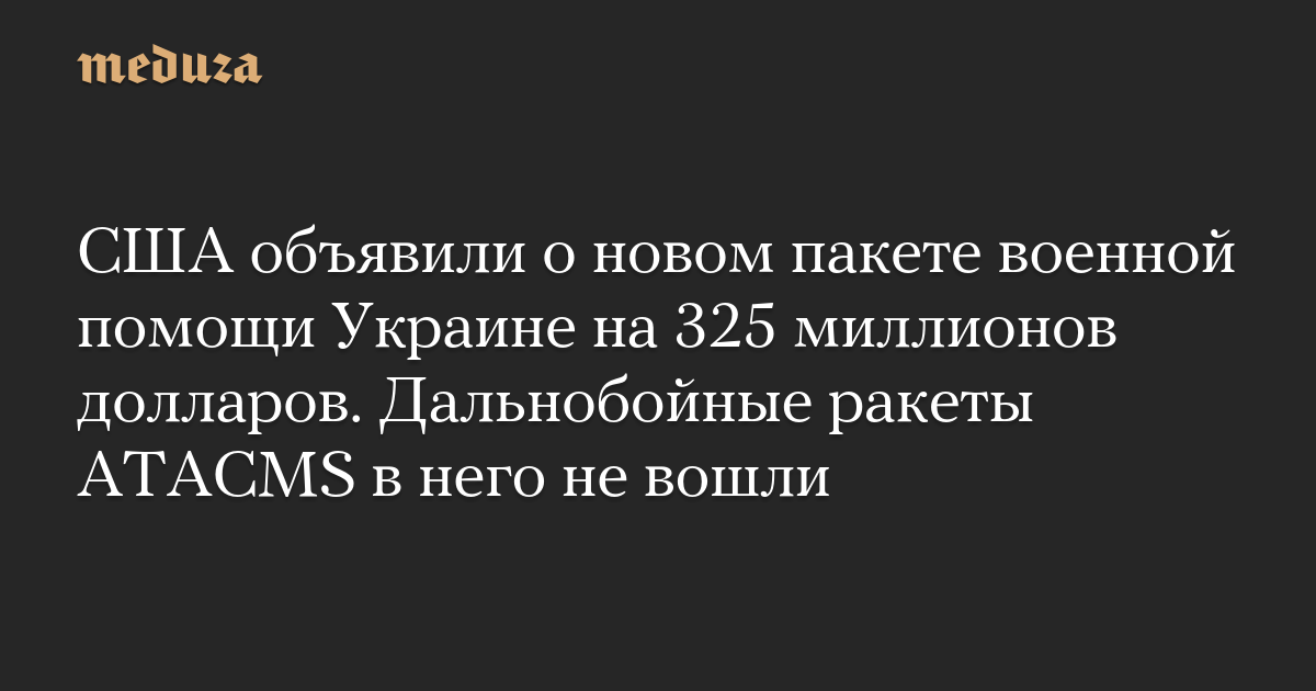 США объявили о новом пакете военной помощи Украине на 325 миллионов долларов. Дальнобойные ракеты ATACMS в него не вошли