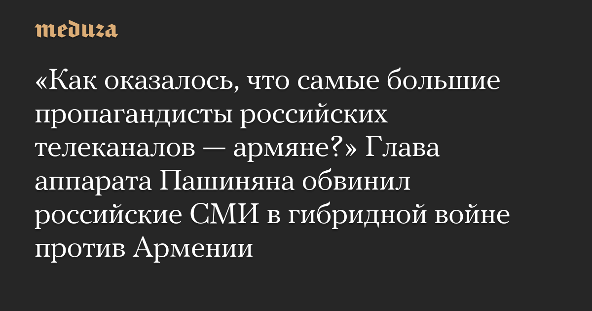 «Как оказалось, что самые большие пропагандисты российских телеканалов — армяне: Маргарита Симоньян, Тигран Кеосаян, Арам Габрелянов, Семен Багдасаров, Роман Бабаян, Сергей Кургинян, Андраник Мигранян и другие?» — добавил представитель армянского правительства.