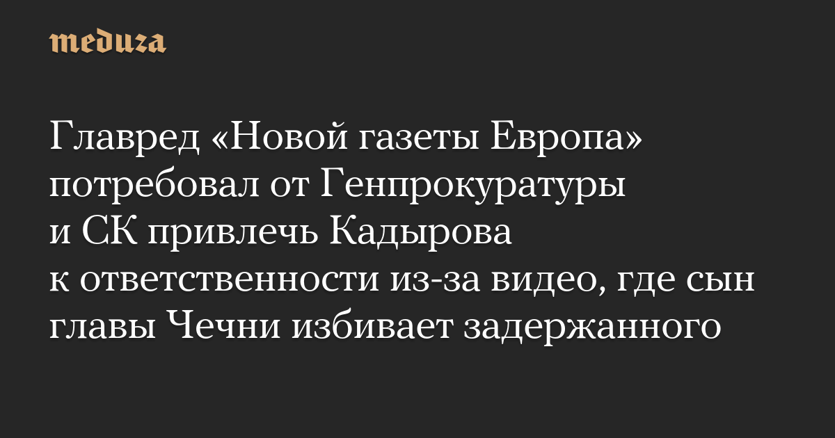 Главный редактор «Новой газеты Европа» также просит «признать избитого заключенного потерпевшим» и «обеспечить безопасность и законные интересы несовершеннолетнего Адама Кадырова».