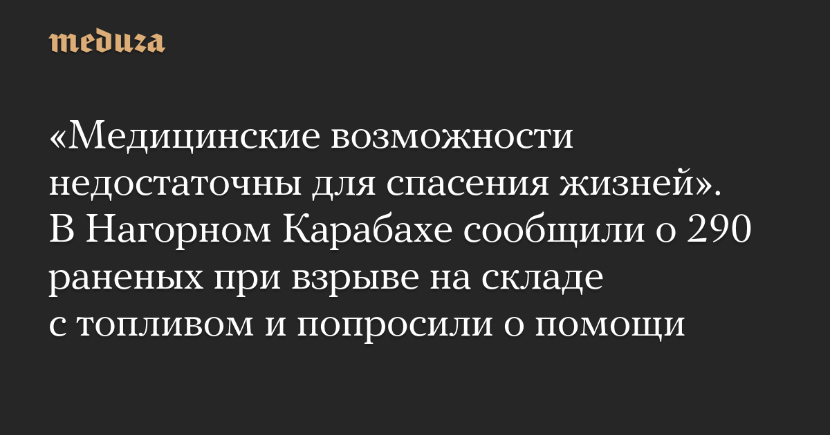 «Медицинские возможности недостаточны для спасения жизней». В Нагорном Карабахе сообщили о 290 раненых при взрыве на складе с топливом и попросили о помощи