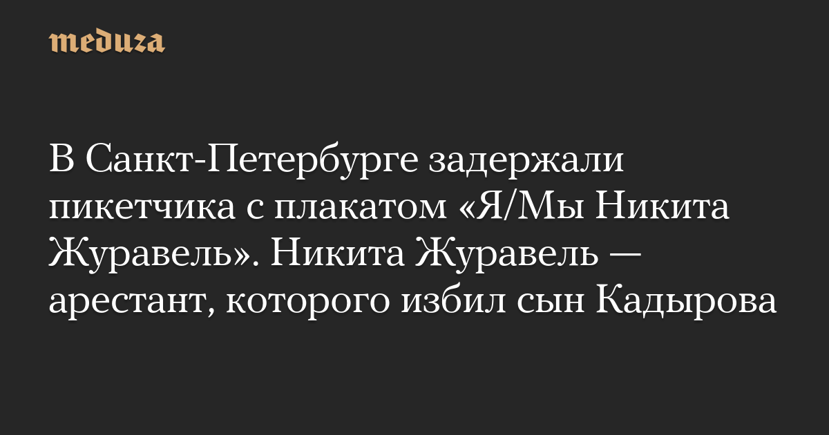 В Санкт-Петербурге задержали пикетчика с плакатом «Я/Мы Никита Журавель». Никита Журавель — арестант, которого избил сын Кадырова
