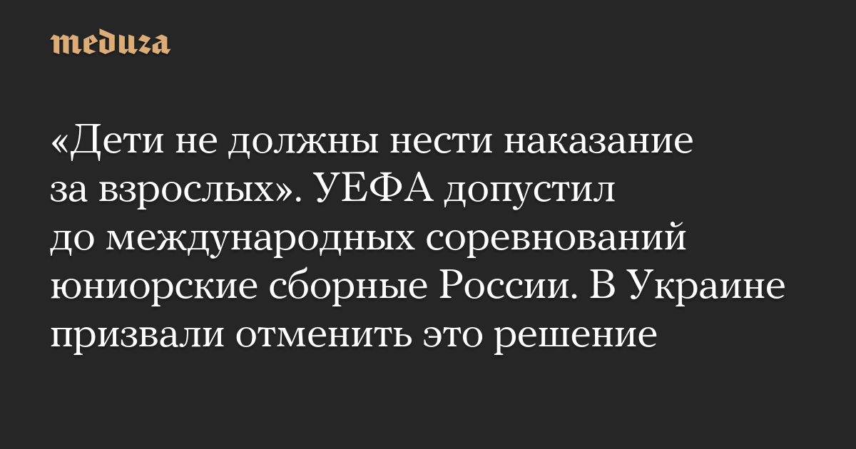 УЕФА осознает, что дети не должны нести наказание за действия, ответственность за которые лежит исключительно на взрослых. Поэтому исполнительный комитет принял решение вернуть в этом сезоне к участию в турнирах УЕФА российские команды, состоящие из несовершеннолетних футболистов.