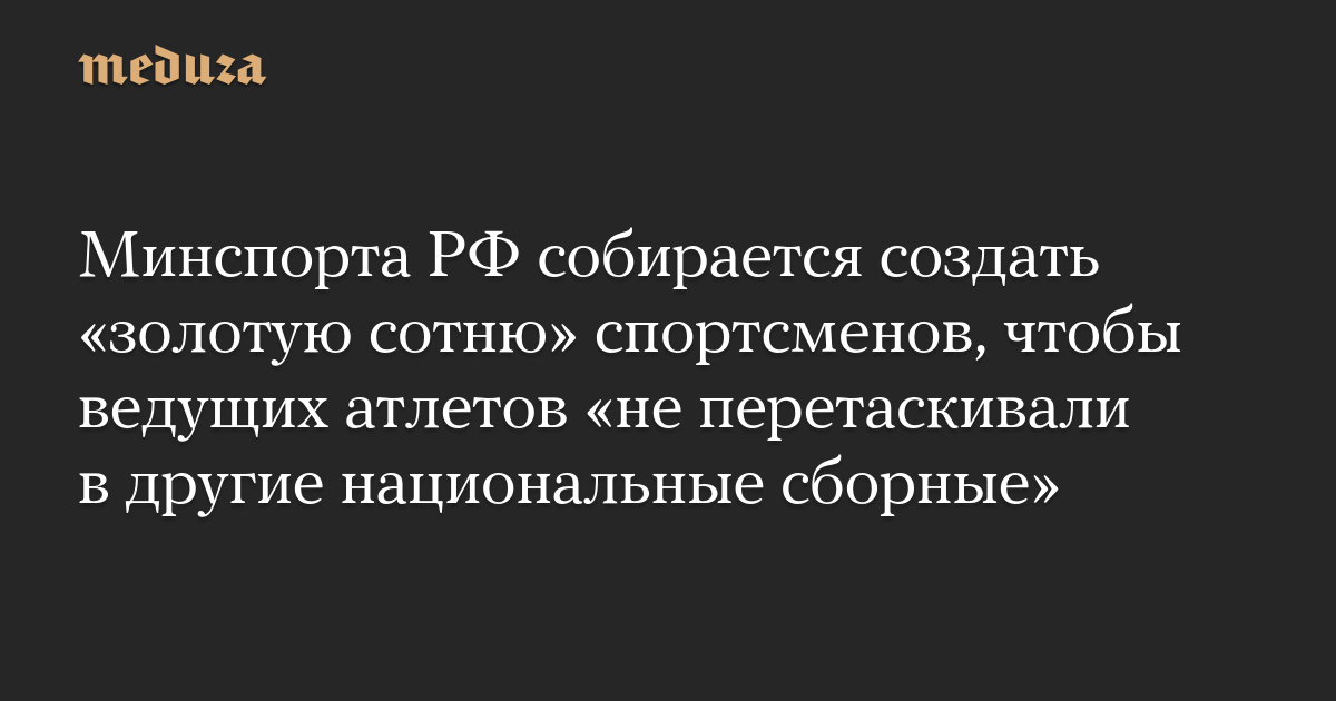 Минспорта РФ собирается создать «золотую сотню» спортсменов, чтобы ведущих атлетов «не перетаскивали в другие национальные сборные»
