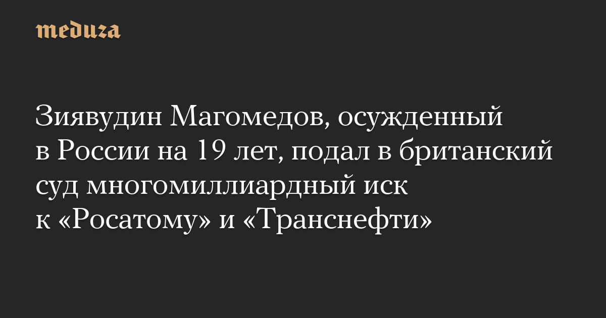 Зиявудин Магомедов, осужденный в России на 19 лет, подал в британский суд многомиллиардный иск к «Росатому» и «Транснефти»