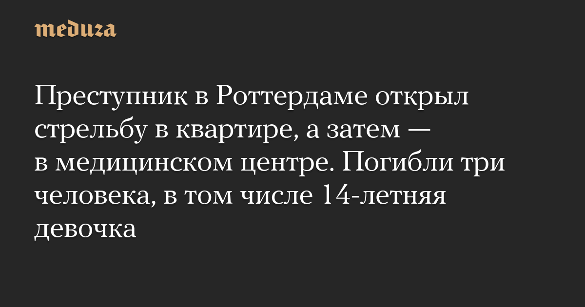 Преступник в Роттердаме открыл стрельбу в квартире, а затем — в медицинском центре. Погибли три человека, в том числе 14-летняя девочка