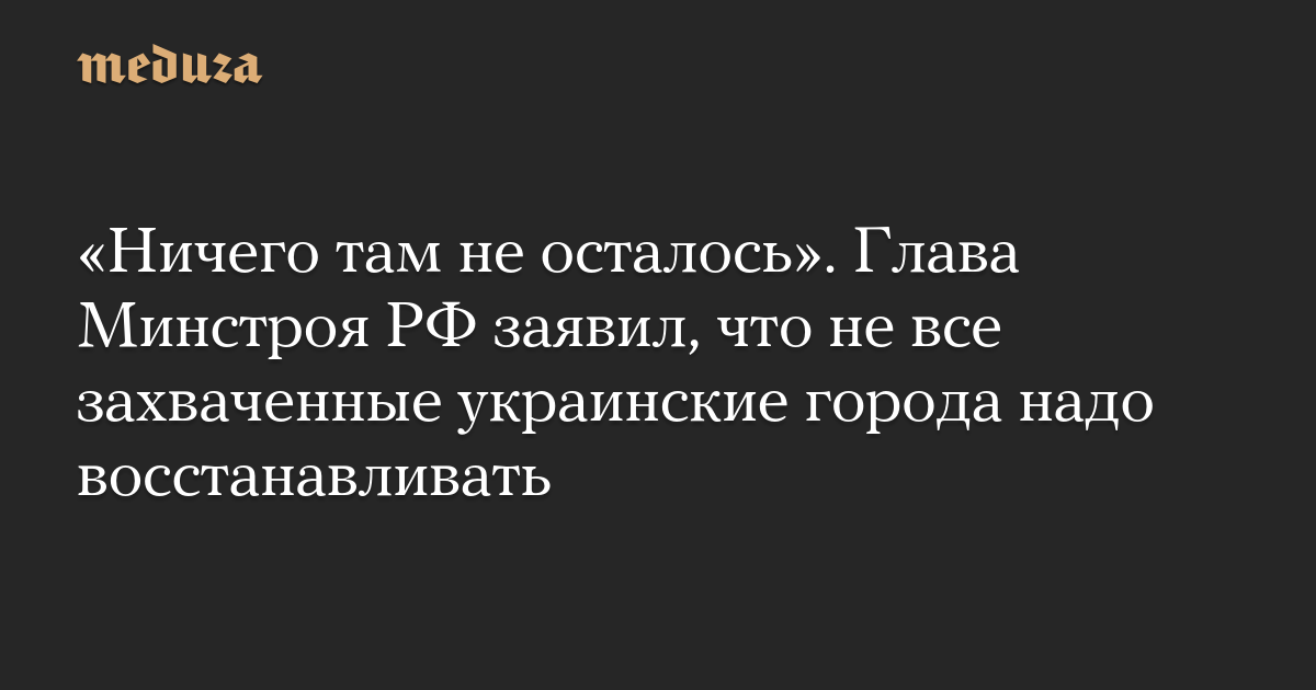 «Ничего там не осталось». Глава Минстроя РФ заявил, что не все захваченные украинские города надо восстанавливать