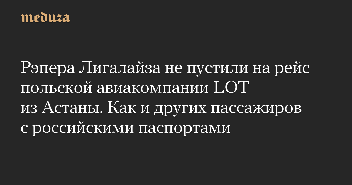 Рэпера Лигалайза не пустили на рейс польской авиакомпании LOT из Астаны. Как и других пассажиров с российскими паспортами