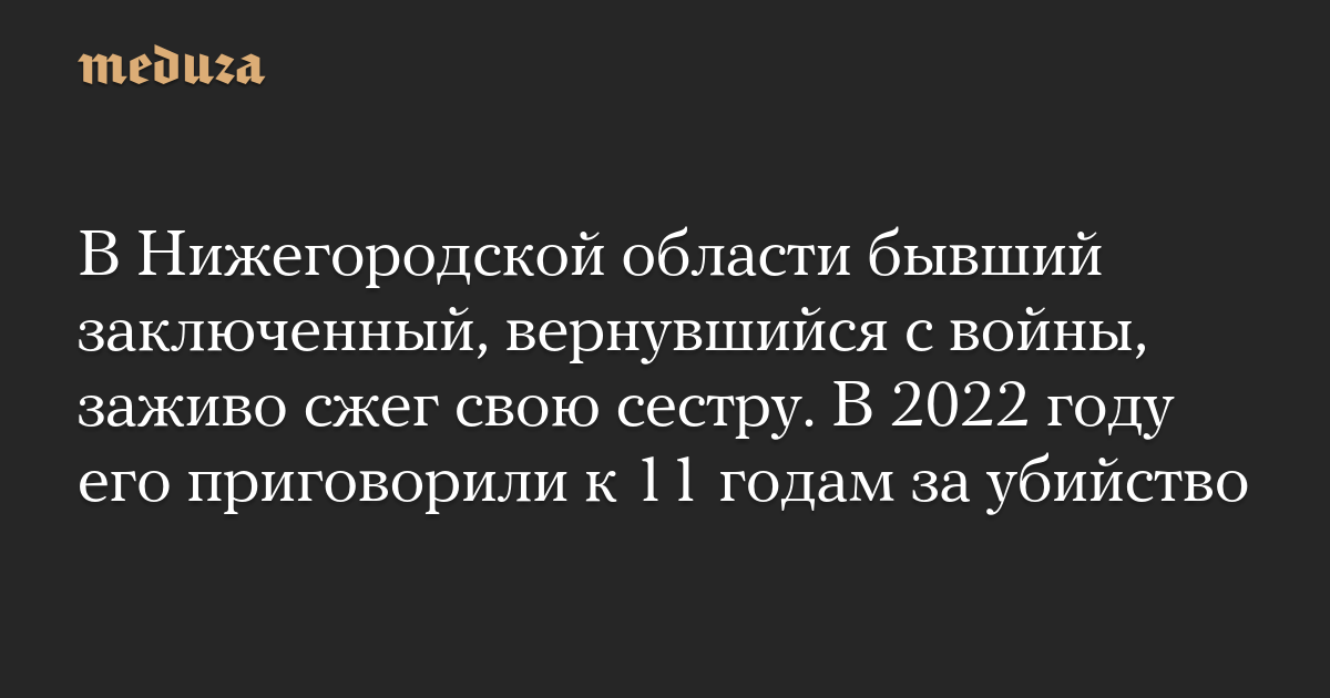 В Нижегородской области бывший заключенный, вернувшийся с войны, заживо сжег свою сестру. В 2022 году его приговорили к 11 годам за убийство