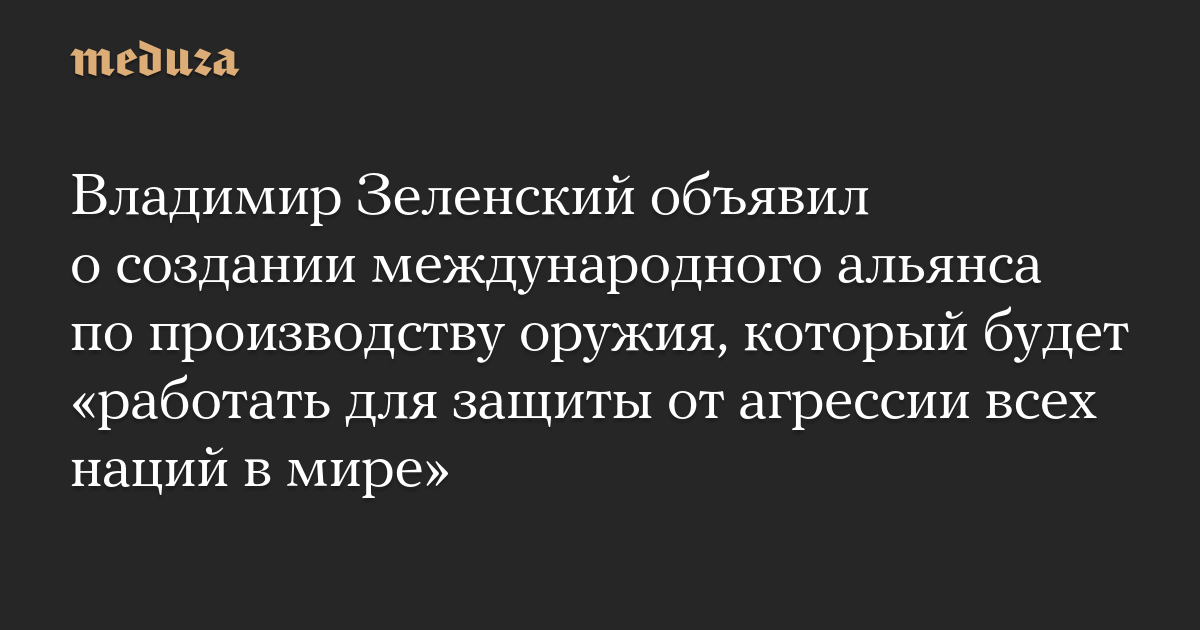 Владимир Зеленский объявил о создании международного альянса по производству оружия, который будет «работать для защиты от агрессии всех наций в мире»