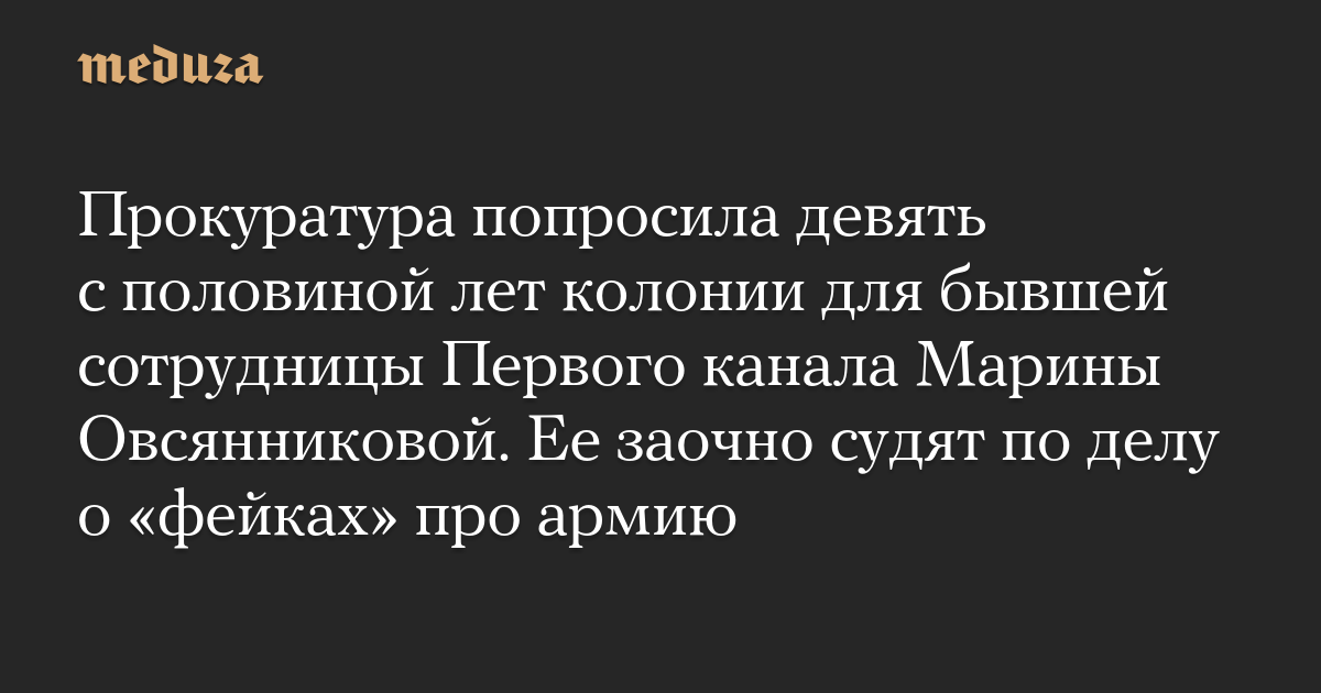 Прокуратура попросила девять с половиной лет колонии для бывшей сотрудницы Первого канала Марины Овсянниковой. Ее заочно судят по делу о «фейках» про армию