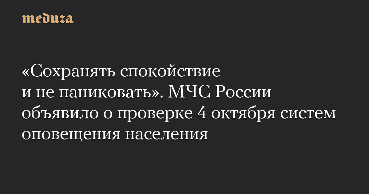 «Сохранять спокойствие и не паниковать». МЧС России объявило о проверке 4 октября систем оповещения населения