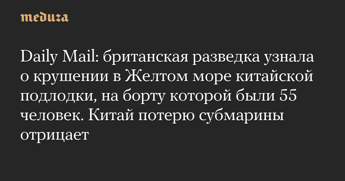 Daily Mail: британская разведка узнала о крушении в Желтом море китайской подлодки, на борту которой были 55 человек. Китай потерю субмарины отрицает