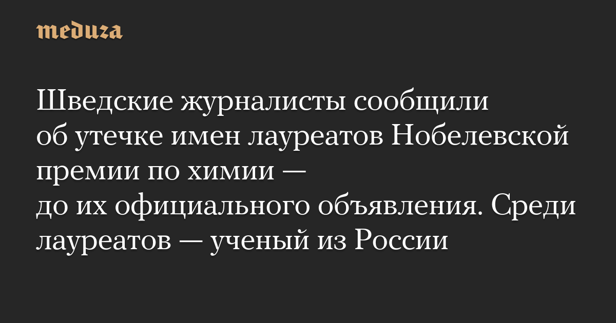 Шведские журналисты сообщили об утечке имен лауреатов Нобелевской премии по химии — до их официального объявления. Среди лауреатов — ученый из России