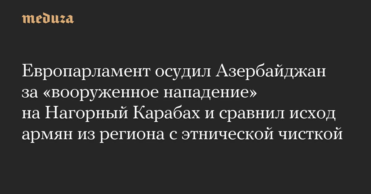 Европарламент осудил Азербайджан за «вооруженное нападение» на Нагорный Карабах и сравнил исход армян из региона с этнической чисткой