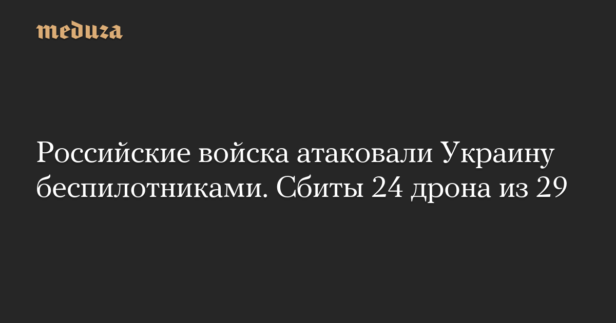 По данным ВСУ, в атаке были задействованы 29 беспилотников, 24 из них удалось сбить в пределах Одесской, Николаевской и Кировоградской областей.