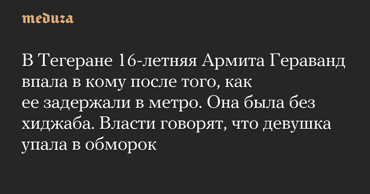 В Тегеране 16-летняя Армита Гераванд впала в кому после того, как ее задержали в метро. Она была без хиджаба. Власти говорят, что девушка упала в обморок