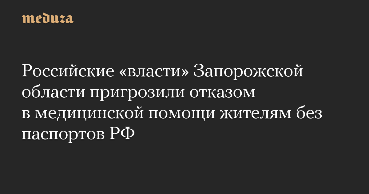 Российские «власти» Запорожской области пригрозили отказом в медицинской помощи жителям без паспортов РФ
