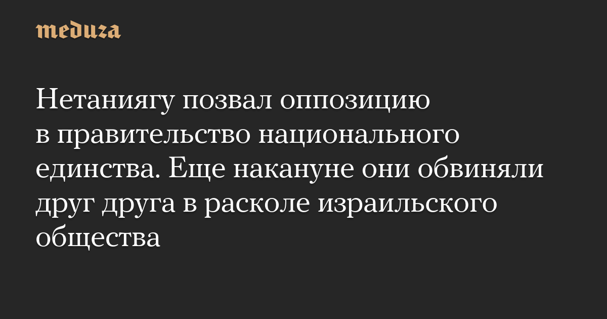 Нетаниягу позвал оппозицию в правительство национального единства. Еще накануне они обвиняли друг друга в расколе израильского общества