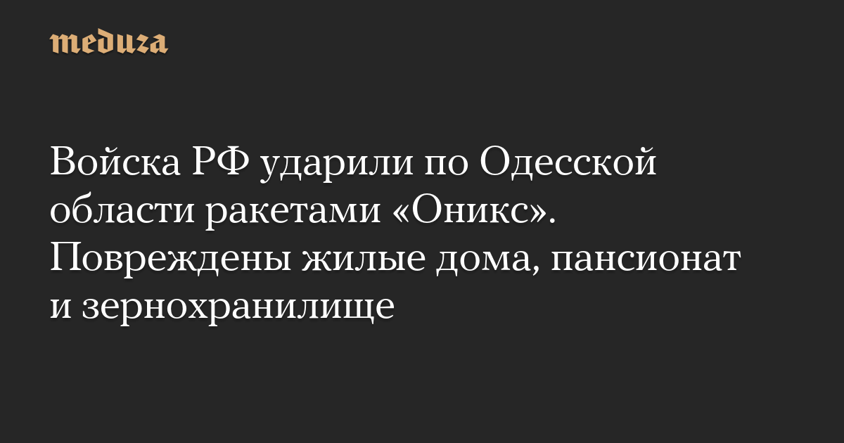 Войска РФ ударили по Одесской области ракетами «Оникс». Повреждены жилые дома, пансионат и зернохранилище