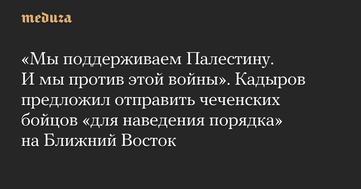 «Мы поддерживаем Палестину. И мы против этой войны». Кадыров предложил отправить чеченских бойцов «для наведения порядка» на Ближний Восток