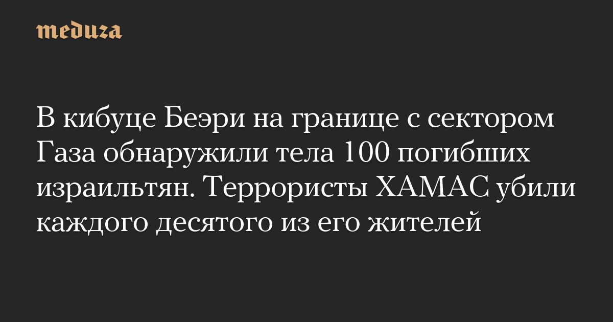 В кибуце Беэри на границе с сектором Газа обнаружили тела 100 погибших израильтян. Террористы ХАМАС убили каждого десятого из его жителей