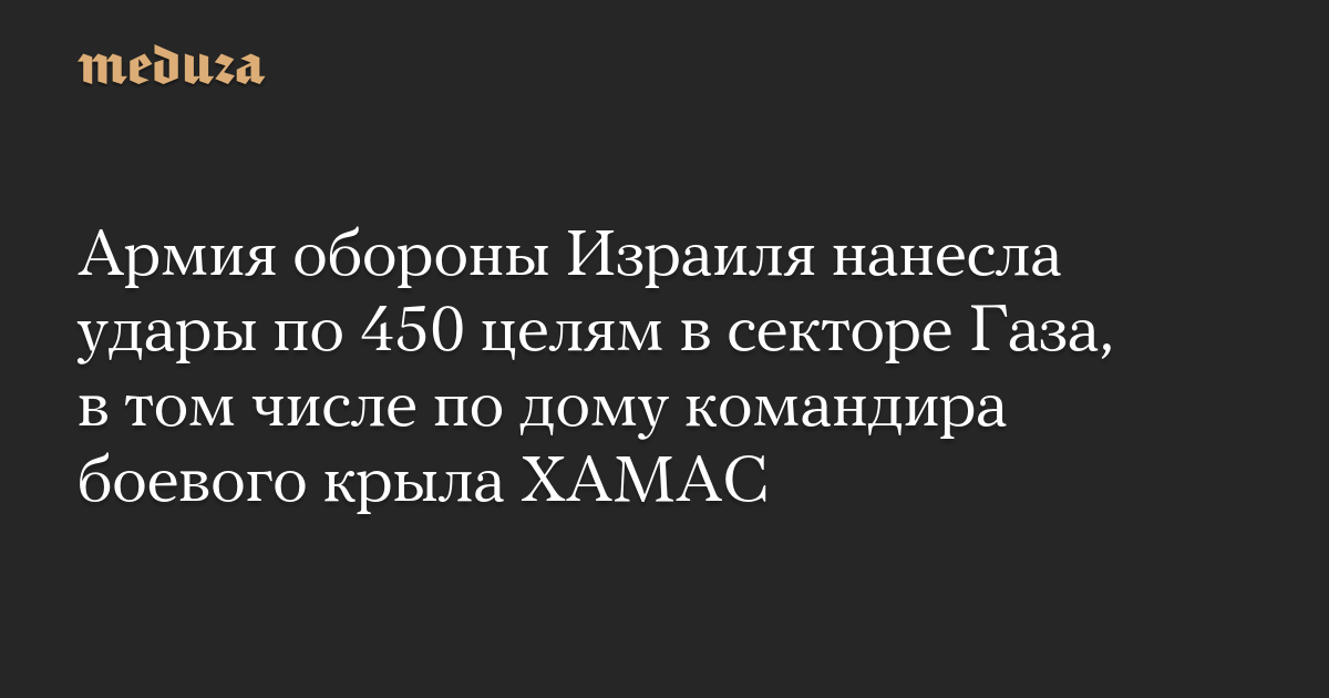Армия обороны Израиля нанесла удары по 450 целям в секторе Газа, в том числе по дому командира боевого крыла ХАМАС