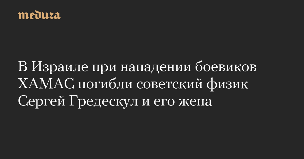 В городе Офаким на юге Израиля в своем доме найдены убитыми советский физик Сергей Гредескул и его жена Виктория. Они погибли 7 октября во время нападения боевиков ХАМАС на Израиль.