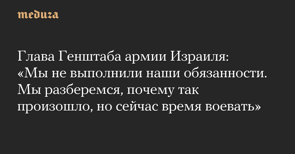Глава Генштаба армии Израиля: «Мы не выполнили наши обязанности. Мы разберемся, почему так произошло, но сейчас время воевать»