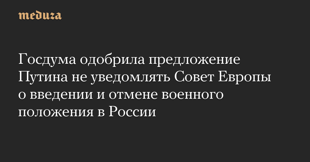 Госдума одобрила предложение Путина не уведомлять Совет Европы о введении и отмене военного положения в России