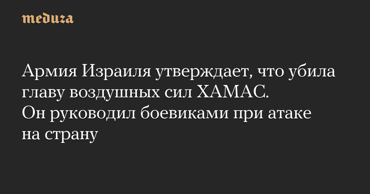 Армия Израиля утверждает, что убила главу воздушных сил ХАМАС. Он руководил боевиками при атаке на страну