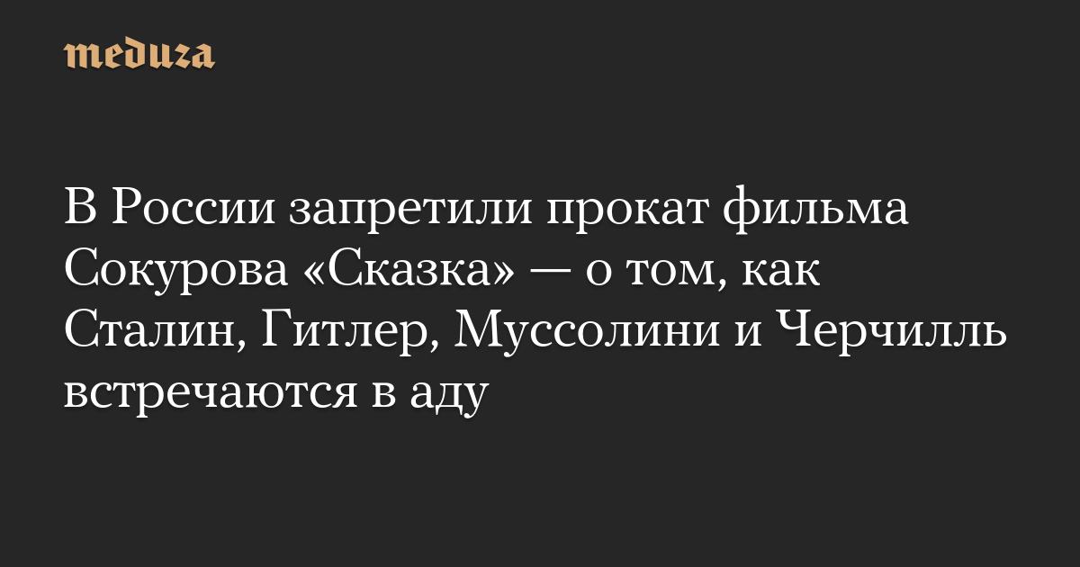 В России запретили прокат фильма Сокурова «Сказка» — о том, как Сталин, Гитлер, Муссолини и Черчилль встречаются в аду
